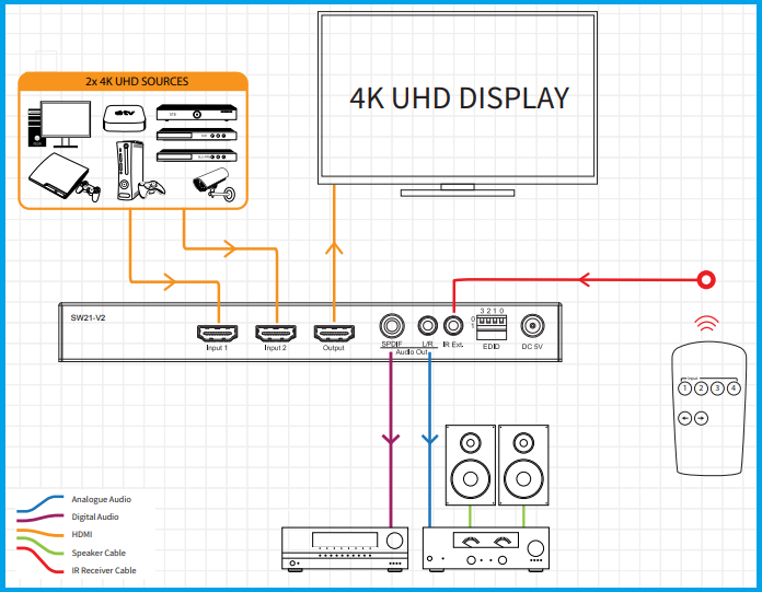 SW21AB-V2 của chúng tôi là một Bộ Switch 2-way HDMI tích hợp tính năng ngắt âm thanh. Bộ Switch hỗ