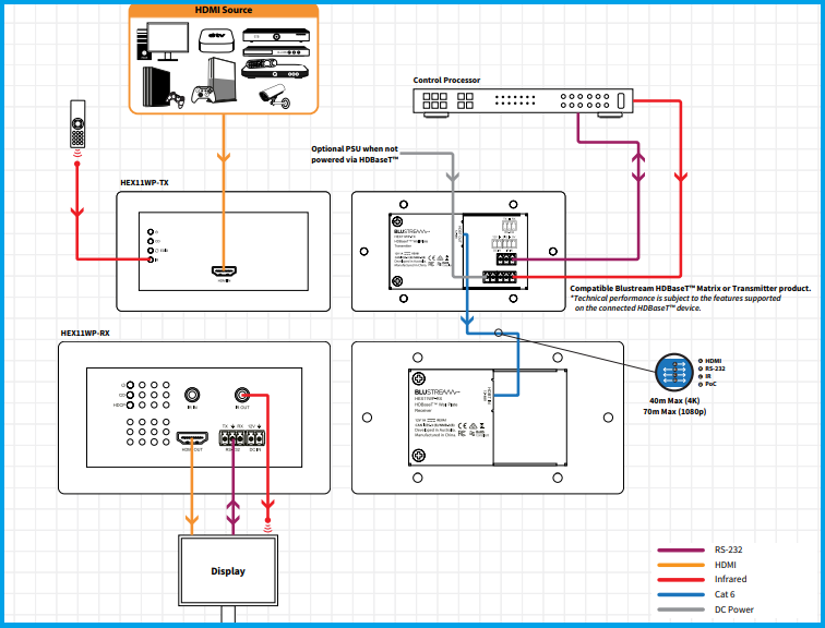 đồng thời có thể được cấp nguồn cục bộ hoặc từ các sản phẩm Blustream HDBaseT ™ tương thích.