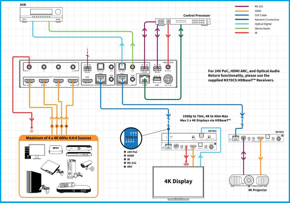 Video Output Connectors: 1x HDMI Type A, 19-pin, Female, 2x HDBaseT™ RJ45 Connector