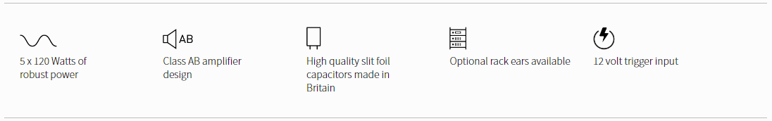 RMB-1555 là bộ khuếch đại đa kênh đáng chú ý với công suất đầu ra được đánh giá thận trọng ở mức 120 Watts mỗi kênh ở trở kháng 8 Ohm (tất cả các kênh đều được điều khiển!). Với tất cả các loại loa, ngoại trừ những chiếc loa có yêu cầu khắt khe nhất, được đặt trong những căn phòng cực kỳ lớn, RMB-1555 thực hiện kiểu điều khiển chính xác thể hiện cả sắc thái và sự khoa trương một cách chính xác từ những âm bội yếu ớt nhất của sáo cho đến tiếng ầm ầm ngầm của ngày tận thế đang đến gần. RMB-1555 sử dụng một máy biến áp hình xuyến, dòng điện cao phù hợp với các bóng bán dẫn đầu ra rời rạc với độ ổn định nhiệt cao hơn và không bị ảnh hưởng bởi các thỏa hiệp được thiết kế sẵn đặc trưng cho những người anh em họ mạch tích hợp của chúng. Cấu hình bộ khuếch đại Class AB đảm bảo sự cân bằng tốt nhất giữa công suất đầu ra và hiệu suất nhiệt.