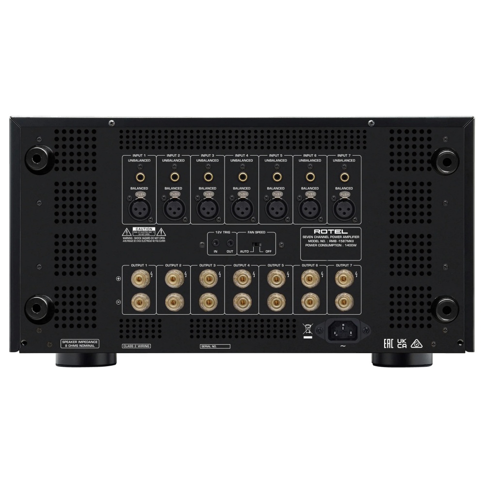 Bộ khuếch đại 7 kênh RMB-1587MKII mới của Rotel tiếp tục phát huy di sản của chúng tôi trong việc sản xuất bộ khuếch đại Class AB công suất cao, dòng điện cao, được sản xuất đặc biệt cho các hệ thống đa kênh. RMB-1587MKII cung cấp 7 kênh khuếch đại Class AB ở mức 155 Watts mỗi kênh thành 8 ohms và điều khiển loa 4 ohm với công suất trên 250 Watts mỗi kênh, điều khiển tất cả các kênh.