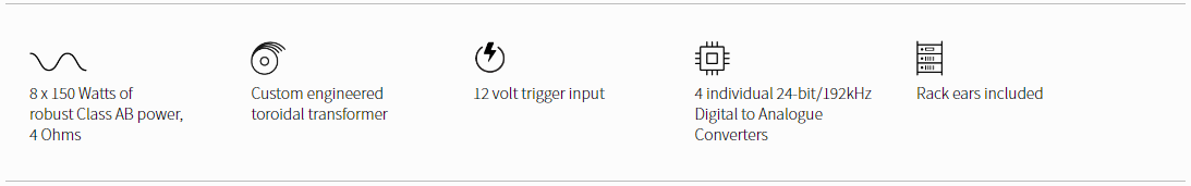 Hiệu suất đáp ứng hiệu quả trong Bộ khuếch đại cài đặt tùy chỉnh C8+ Class AB của Rotel, điều khiển 8 kênh âm thanh cao cấp ở mức 150 Watts mỗi kênh hoặc nối cầu loa ở mức 300 Watts 4 Ohm sử dụng công nghệ khuếch đại độc quyền của Rotel. Máy biến áp hình xuyến cỡ lớn được sản xuất nội bộ điều khiển 32 thiết bị đầu ra để tạo ra năng lượng âm trầm được kiểm soát dễ dàng. Để đạt được tính linh hoạt cài đặt tối đa, C8+ bao gồm 4 đầu vào Analog, 4 đầu vào Kỹ thuật số được ma trận cho tất cả các Vùng. Màn hình và điều khiển bảng mặt trước cung cấp lựa chọn nguồn và cài đặt âm lượng, âm trầm và âm bổng độc lập. Tích hợp hệ thống điều khiển có sẵn thông qua giao diện IP và RS232 và bộ kích hoạt 12-Volt. Chiều cao 2U tùy chỉnh không yêu cầu khoảng trống trên hoặc dưới khi lắp giá đỡ.