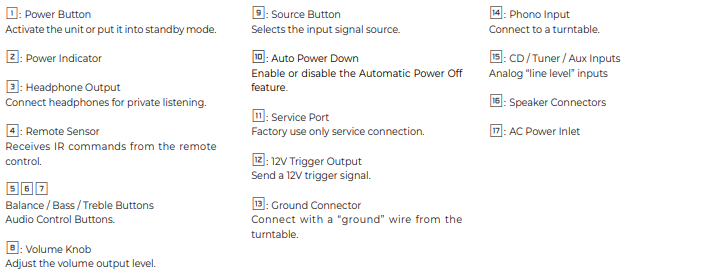 Phono Input: 20Hz - 20kHz, -0.5dB, +0.3dB