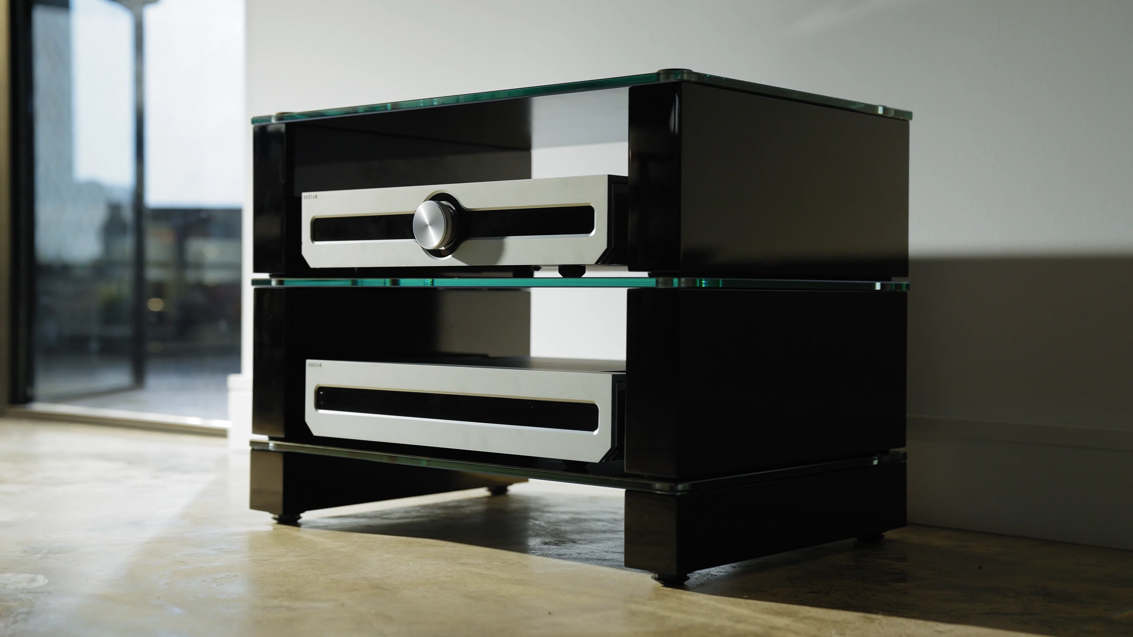 Loại kệ: Modular HiFi rack ba tầng, chuyên dụng cho thiết bị audio.
