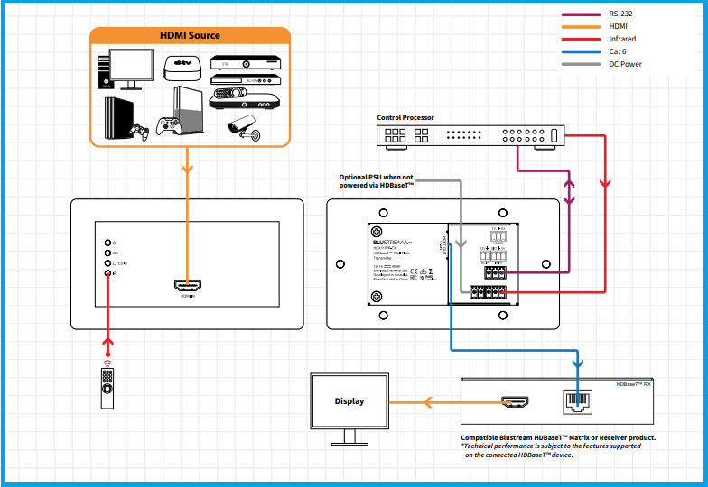 thời có thể được cấp nguồn cục bộ hoặc từ các sản phẩm Blustream HDBaseT ™ tương thích.