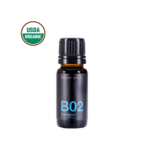 B02 Energize giống như một ly cà phê espresso cho khứu giác, nhưng lành mạnh và tự nhiên hơn. Đây là hỗn hợp (blend) của các loại tinh dầu thuộc nhóm Cam chanh (Citrus) và Thảo mộc có khả năng kích thích sự tỉnh táo mạnh mẽ nhất.
