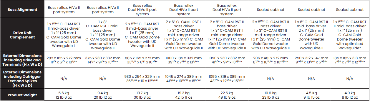 1 x 1" (25 mm) C-CAM Gold Dome tweeter với Uniform Dispersion (UD) Waveguide II cho âm thanh sống động như thật hơn.