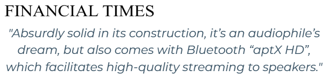 Bluetooth aptX HD tích hợp giải phóng Alva khỏi phần còn lại của dàn hi-fi của bạn. Với quyền tự do đặt bộ bài Alva trên bất kỳ bề mặt phẳng nào, hồ sơ của bạn sẽ chiếm vị trí trung tâm. Âm nhạc có thể được truyền trực tuyến tới bất kỳ bộ Bluetooth tương thích nào, bao gồm cả tai nghe, với chất lượng Hi-Res lên tới 24bit/48kHz. Hoặc bạn có thể tắt nó và chỉ cần sử dụng cáp phono – đó là quyết định của bạn.