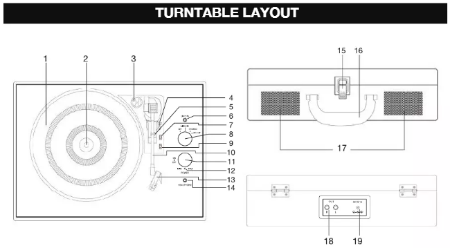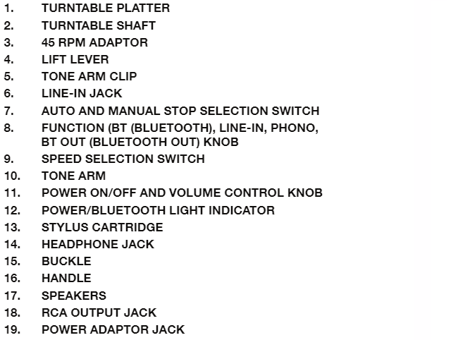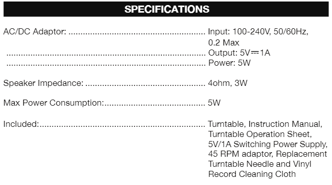 Máy ghi âm có mâm than điều khiển bằng dây đai 3 tốc độ (33 1/3, 45, 78 vòng/phút) phát tất cả các bản ghi vinyl và album yêu thích của bạn.