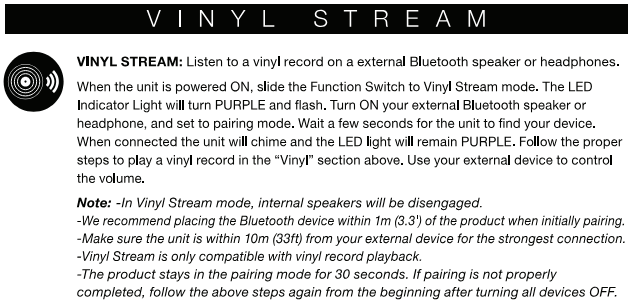 - Công nghệ Vinyl Stream cho phép bạn truyền phát các bản ghi của mình tới bất kỳ loa Bluetooth bên ngoài nào.