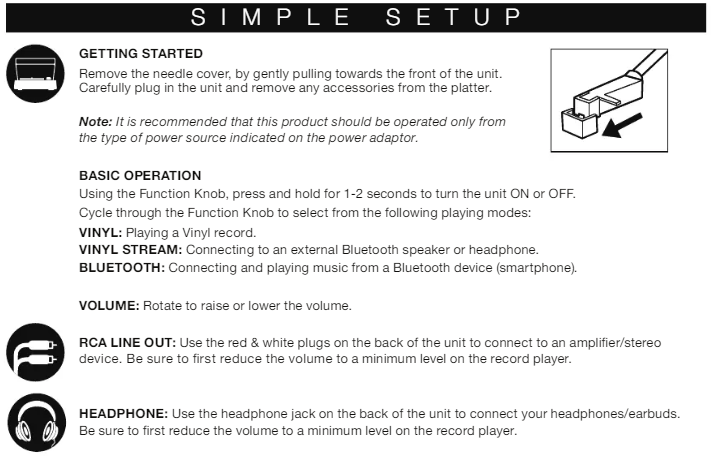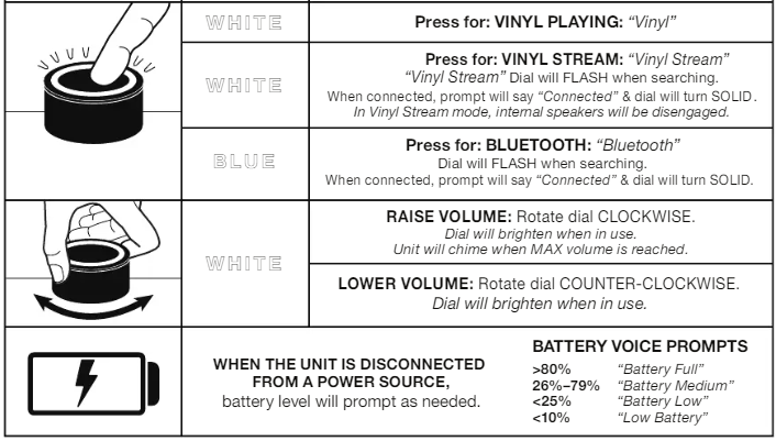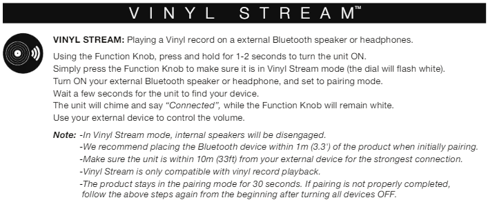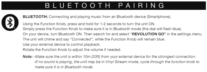 Revolution GO bao gồm một mâm than điều khiển bằng dây đai 3 tốc độ với đầu kim MM của Audio Technica. Loa âm thanh nổi Bluetooth tích hợp cho phép bạn dễ dàng truyền các giai điệu yêu thích của mình và công nghệ Vinyl Stream™ đang chờ cấp bằng sáng chế của chúng tôi cho phép bạn truyền các bản ghi của mình tới bất kỳ loa Bluetooth bên ngoài nào. Pin lithium có thể sạc lại kéo dài tới 12 giờ phát lại liên tục.