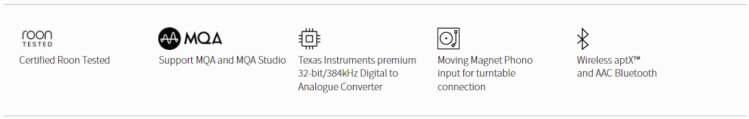 - Đầu vào nguồn kỹ thuật số được xử lý bằng Bộ chuyển đổi kỹ thuật số sang âm thanh (DAC) 32-bit/384kHz của Texas Instruments với các mạch lọc đầu ra bên ngoài được điều chỉnh âm thanh độc quyền, được thiết kế tùy chỉnh, hiển thị ngay cả những chi tiết nhỏ nhất với độ rõ nét đặc biệt và định vị chính xác. Đường dẫn tín hiệu analog có chế độ bỏ qua DIRECT-PATH loại bỏ các mạch không cần thiết để duy trì tính toàn vẹn của tín hiệu và loại bỏ hơn nữa tiếng ồn và biến dạng không mong muốn, kéo bạn đến gần hơn và đắm chìm trong âm nhạc.